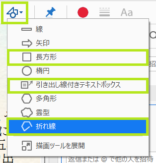 2.文章を移動したい→「描画ツール」囲みと折れ線