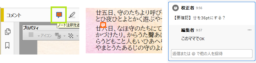 コメントではなく、同じ吹き出しマークなのに「ノート注釈」という機能があります。